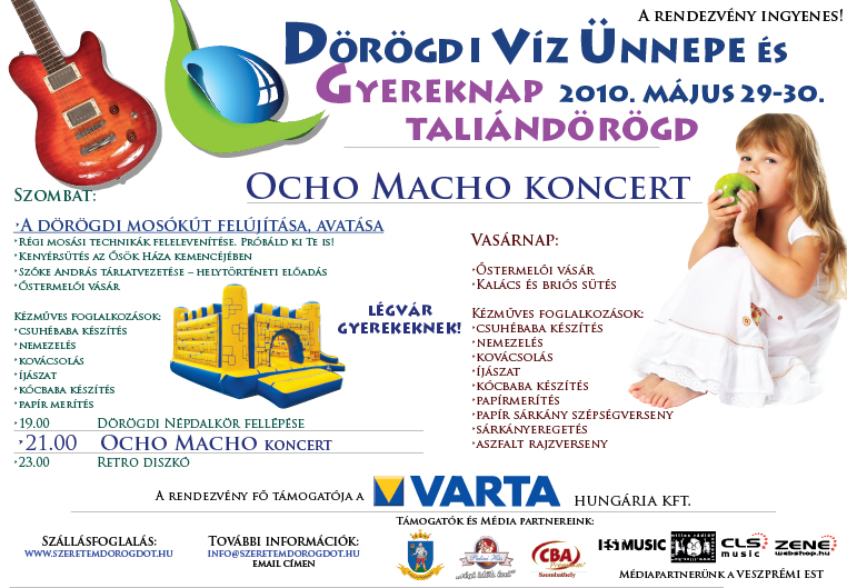 A szombat este fő attrakciója az Ocho Macho koncert volt a plébánia nagyszínpadán. Rengetegen voltunk, nagyon jól mulattunk - velünk "csápolt" Peti a díszkovács és fegyvermester, Varga Zoli, polgármester úr és felesége is, na és persze sok taliándörögdi lakos - kicsik és nagyok -, és sokat eljöttek a környező településekről is. Aki ott volt, felejthetetlen élményekkel tért haza vagy folytatta útját a retró diszkóba a Klastrom kocsmába.