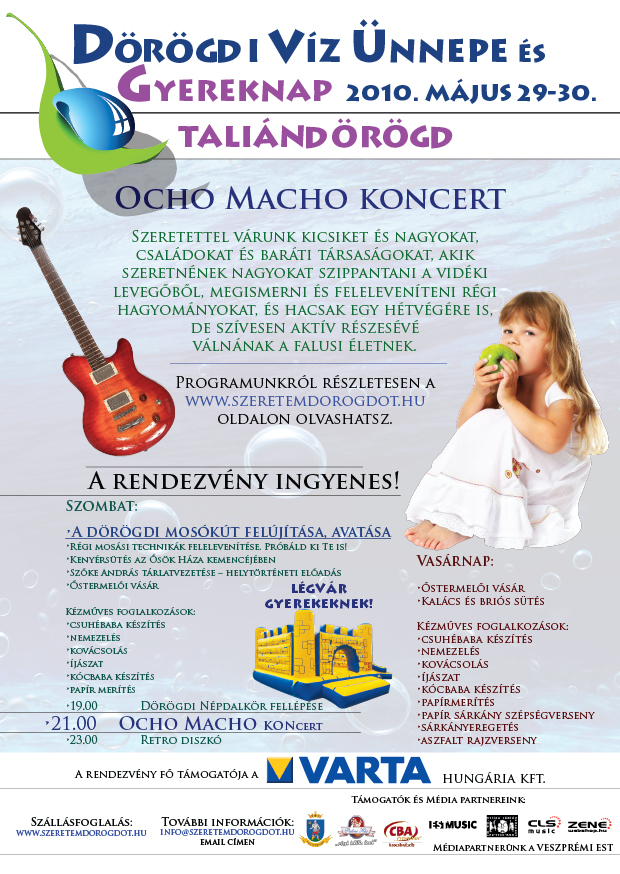 A szombat este fő attrakciója az Ocho Macho koncert volt a plébánia nagyszínpadán. Rengetegen voltunk, nagyon jól mulattunk - velünk "csápolt" Peti a díszkovács és fegyvermester, Varga Zoli, polgármester úr és felesége is, na és persze sok taliándörögdi lakos - kicsik és nagyok -, és sokat eljöttek a környező településekről is. Aki ott volt, felejthetetlen élményekkel tért haza vagy folytatta útját a retró diszkóba a Klastrom kocsmába.